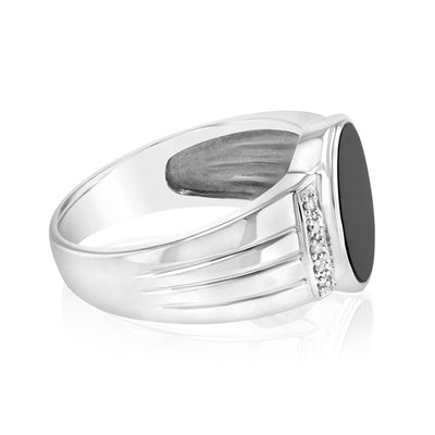 Sterling Silver Onyx + Cubic Zirconia Gents Ring