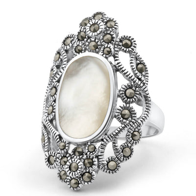 Sterling Silver Mother Of Pearl and Marcasite Ring
