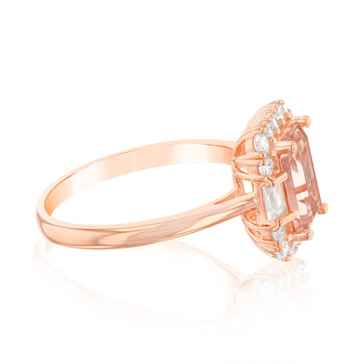 Sterling Silver Rose Gold Plated White And Morganite Cubic Zirconia Fancy Ring