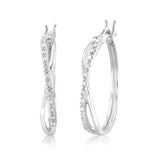 Boasting luxurious sparkles, these 1/10 Carat Diamond Crossover Hoop Earrings in Sterling Silver are the epitome of gorgeous. The crossover effect adds to its value, showcasing a unique design complementing the ears. Complete with a reflective silver hue, these earrings are simply to adore and cherish.