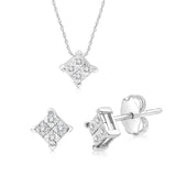 1/10 Carat Diamond Earrings and Pendant Set on 45cm Chain in Sterling Silver