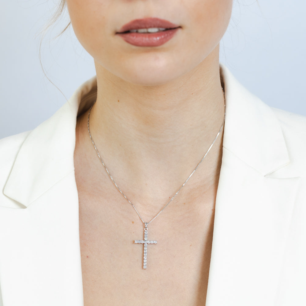1/10 Natural Diamond Cross Pendant in Sterling Silver