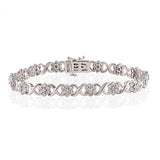 A Silver 1/2 Carat Diamond 18cm Bracelet in a bright sterling silver finish. Studded with beautiful floral diamonds, this ½ carat bracelet has a girly luxury feel. Designed with an X's and O's pattern for a contemporary and cute tone. This beautiful bracelet is the perfect way to light up your apparel.