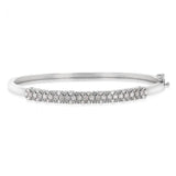 This sterling silver hinge bangle has been set with luxurious 1/2-carat diamonds in three rows. There’s nothing more special than a piece of jewellery that has been covered with diamonds that will sparkle and reflect each other when they hit the light. Once you put this bangle on it will instantly become one of your daily staples. Stack this with your favourite bangles to create the look you desire.