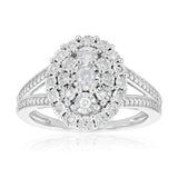 A stunning addition to your jewellery collection, this ring is crafted in lustrous sterling silver and features a cluster of 27 brilliant diamonds. The perfect complement to any outfit, this ring is sure to make a statement for that special occasion or your everyday wear. This Sterling Silver 1/5 Carat Diamond Oval Cluster Ring with 27 Brilliant Diamonds has exactly the glimmering and sparkle you'd expect from a precious piece like this.