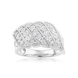 This Sterling Silver 1/5 Carat Diamond Ring with 25 Brilliant Diamonds is a sparkling statement piece that features 25 diamonds. Crafted with beautiful sterling silver and a unique, contemporary design, this ring stands out from the crowd. Perfect for women who love creating a curated look with jewellery, this ring adds a touch of glamour to any outfit. The ring not only shines with beautiful diamonds but also has delicate details that frame the design.