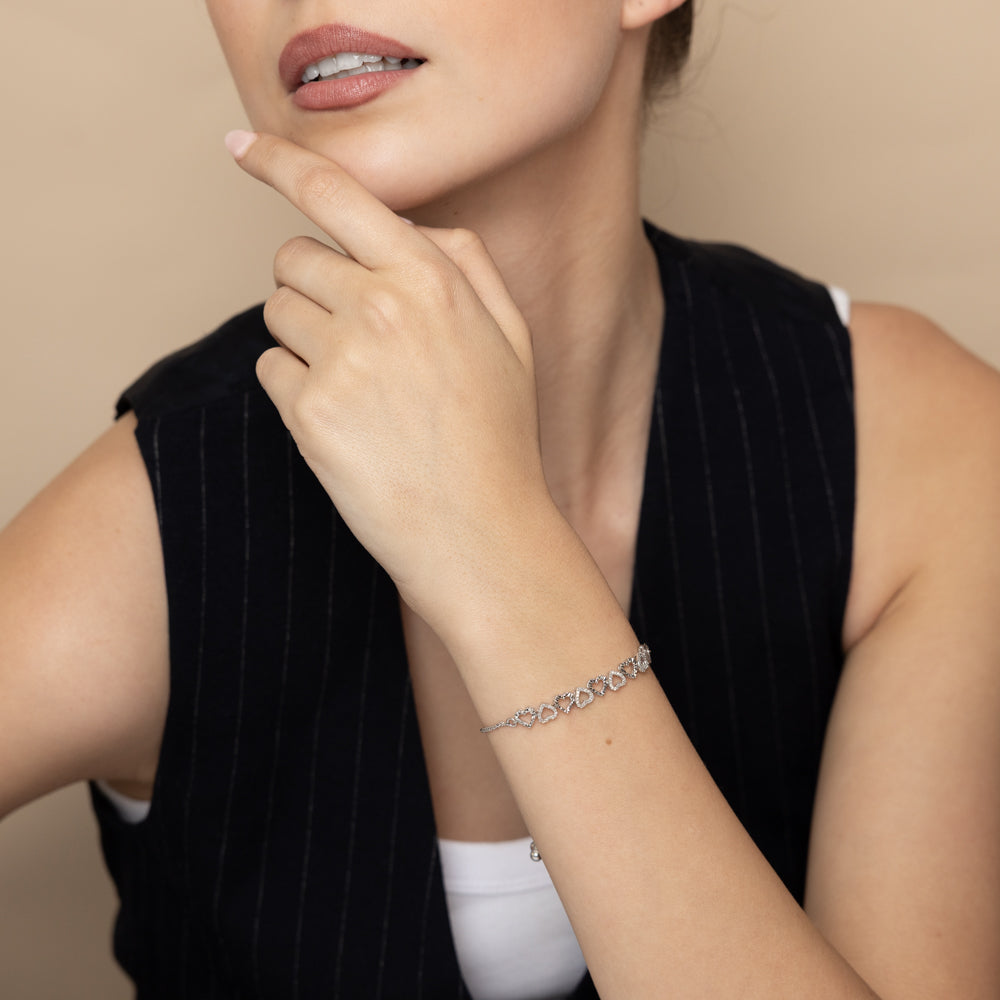 1/6 Carat Diamond Heart Bracelet Adjustable 23cm in Sterling Silver