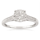 This Sterling Silver Diamond Ring embellished with brilliant cut diamonds will have onlookers enthralled for its spellbounding dazzle and brilliant shimmer. Pair with your favourite silver necklace for a truly grand look.