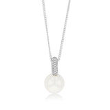 10-12mm White South Sea Pearl Pendant with Pave Zirconia Bale on 45cm Chain in Sterling Silver