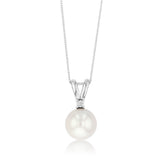 11-12mm White South Pearl and Zirconia Pendant on 45cm Chain in Sterling Silver