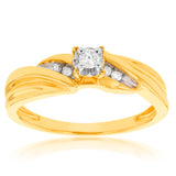This 14-carat gold-plated sterling silver 1/10-carat diamond ring is a classic and elegant piece of jewellery that is perfect for any occasion. The ring has been crafted from high-quality sterling silver and has been plated with luxurious 14-carat yellow gold. The diamonds set into the centre of the ring are 1/10 carat and add a brilliant sparkle to the piece.