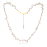These elegant freshwater pearls offer a unique look that is so classy, perfect for special occasions and when you feel like wearing something classy. The necklace has a splash of gold with a clasp that has a single pearl hanging on the end.