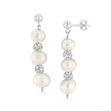 6-9MM Fresh Water Black Pearl Crystal Bead Earring & Pendant Set in Sterling Silver