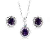 Amethyst and White Zirconia Earring and Pendant on Chain in Sterling Silver