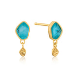 These stunning Ania Haie Gold Plated Sterling Silver Mineral Turquoise Drop Stud Earrings combine luxury with affordability. The captivating sea-green stone represents wisdom, tranquillity, protection and hope. The stone is perfectly carved to an irregular shape representative of its natural form. These studs are perfect for any occasion.