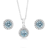 Bue Topaz and White Zirconia Earring and Pendant Set on Chain in Sterling SIlver