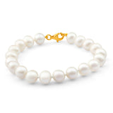 This Cream Freshwater Pearl 19cm Bracelet with Gold Plated Sterling Silver Clasp is one of a kind. Treat yourself or a loved one to this elegant Freshwater Pearl bracelet. This beautiful bracelet features a row of lustrous, round white pearls with a delicious cream tinge. The design is complete with our classic gold plated sterling silver clasp. Freshwater pearls form in freshwater mussels making them the most varied, diverse and unique of all pearl types. Their natural characteristics are what give them their beauty and personality, meaning no two pearls are ever the same!