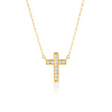 This Georgini Gold Plated Sterling Silver Zirconia Spiritus Pendant On Chain gives your everyday look new meaning. Its cross design is set with a collection of glistening white zirconia, and set in a beautiful plated yellow gold. This spiritual pendant comes set on a yellow gold chain for easy wear.