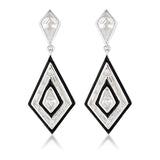 These Georgini drop earrings feature a unique diamond-shaped design that takes inspiration from the early 20th-century art deco style that was influenced by luxury and sophistication known from the era. These earrings have been set with sparkly crystals that will shimmer in the light and a contrasting black enamel that brings the piece to life. With a luxurious sterling silver build these earrings will make you feel special every time you put them in. The drop earring style is perfect for formal and special occasions when you want to wear something a bit flashy.