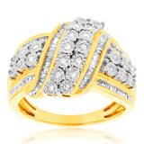 A dazzling dress ring for an amazing price, this Gold Plated Silver 1/2 Carat Diamond Ring is an alluring design and will pair with your whole wardrobe. See it sparkle and catch the light at all angles with its mix of Brilliant and Baguette cut Diamonds.