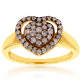 Gold Plated Sterling Silver 1/2 Carat Champagne Diamond Heart Ring
