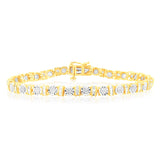 Gold Plated Sterling Silver 1/5 Carat Diamond 18.5cm Bracelet With 59 Round and Baguette Cut Diamonds