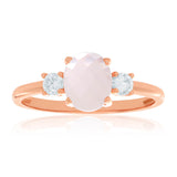 Gold Plated Sterling Silver Cubic Zirconia + Rose Quartz Oval Ring