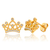 Earrings that are fit for a queen. These have been crafted with gold plated sterling silver and set with sparkly cubic zirconia studs. The sterling silver has been crafted into a curly crown that will impress all with how cute the crowns are.
