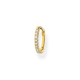 This Gold Plated Sterling Silver Thomas Sabo Charm Club Zirconia Hoop brings sparkle and lively energy to your look. This single earring is set with zirconia gemstones, finely cut to catch light and show off fiery glimmer. These stones pair wonderfully with the yellow gold plating, for a classic luxury finish.