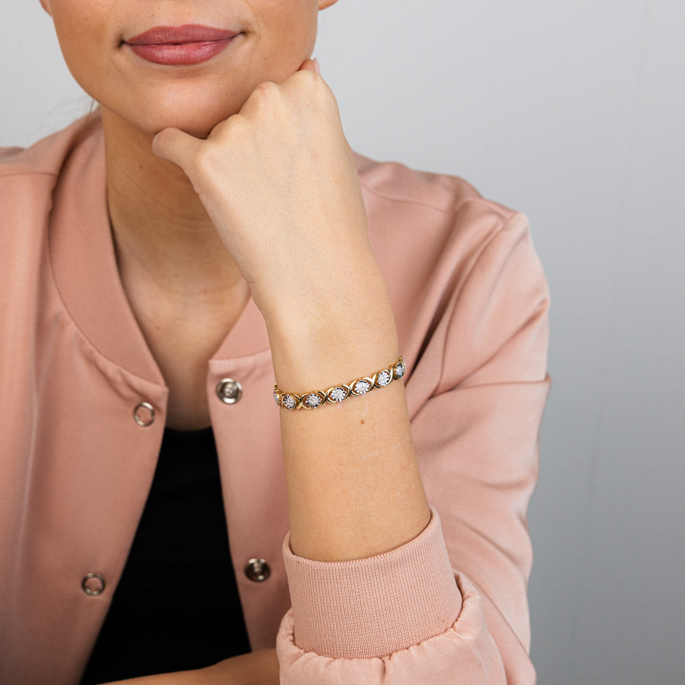 Luminesce Lab Grown 1 Carat Tennis Diamond Bracelet in Gold Plated Silver 17.5CM