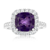 Natural Amethyst & Created White Sapphire Ring Sterling Silver