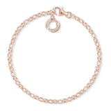 A staple piece in any wardrobe, this Rose Gold Plated Sterling Silver Thomas Sabo Charm Club Belcher 17cm is a real showstopper. Crafted in stunning Thomas Sabo rose gold that exudes hues of pink and yellow. A belcher bracelet is a great everyday staple that features round links. The bracelet also has a charm with the iconic Thomas Sabo logo which adds a fun element to the piece. You can add charms to this bracelet or wear it on its own.