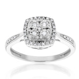 Silver 0.10 Carat Diamond Cushion Cluster Ring