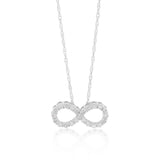 This sterling silver chain features 1/10-carat brilliant diamonds that have been shaped into the infinity sign. A perfect gift for someone special in your life that you want to symbolise forever with them. The shiny silver and sparkling diamonds will brighten up their life almost as much as this thoughtful gift.