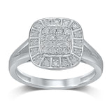 Elegant and lavish, the Silver 1/4 Carat Cluster Ring with 32 Brilliant Diamonds is sure to impress. Designed with a stunning pattern that adds texture and unique style you'll love. Polished silver setting frames the sparkling stones, accentuating their brilliance and beauty. This classy ring is all yours to enjoy.