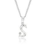 If the first letter of your name starts with S, this pendant is for you. Name initial pendants are youthful fun, and always in trend. You'll love wearing this pendant as this is good to go with any attire. Sterling silver catches the light perfectly in this curved shape, and a diamond stud adds an extra touch of glamour.