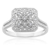 This diamond ring is a delight to wear, with neat design and a never-ending sparkle. This piece will turn heads in stunning silver and catch glances with its intricate brilliant cut diamonds.