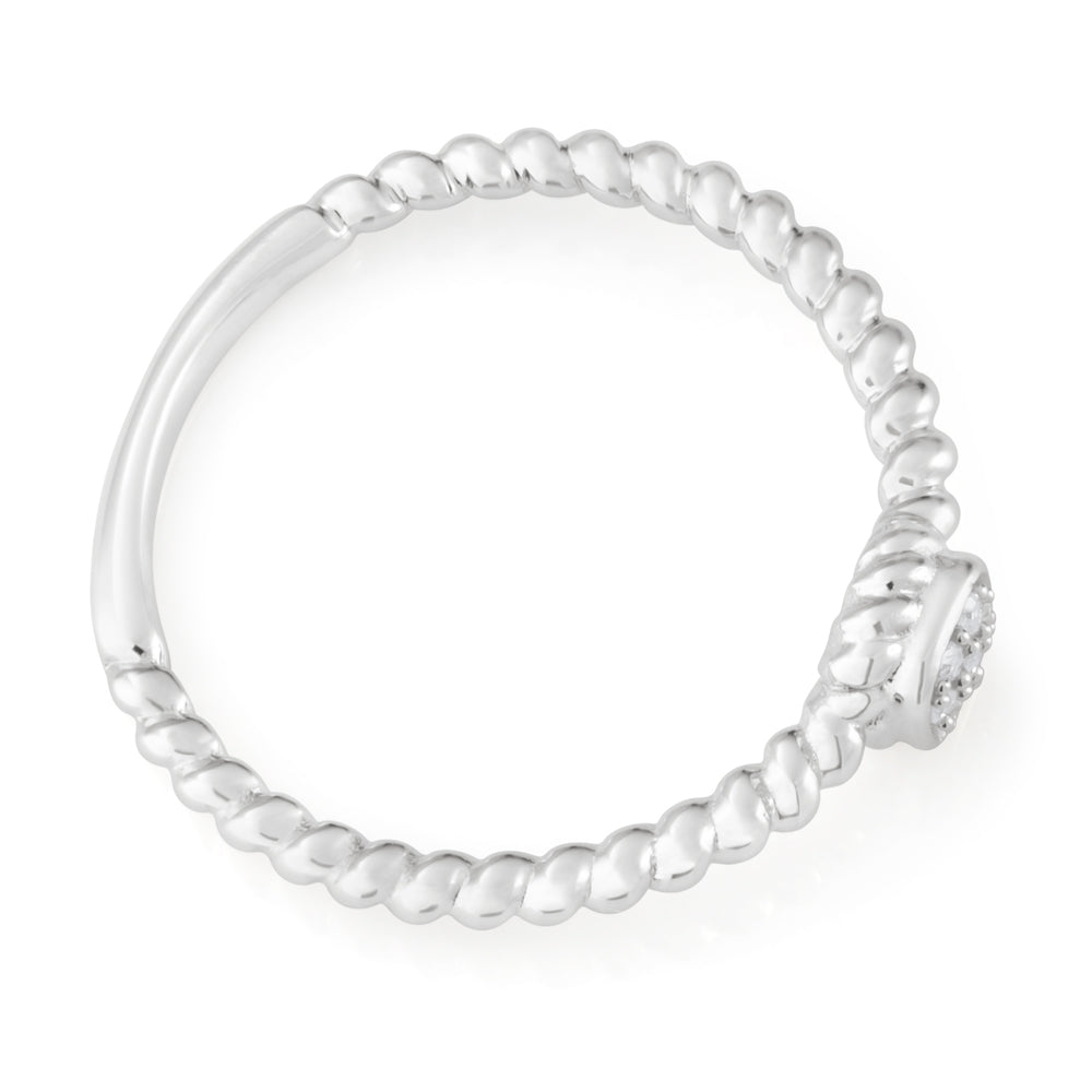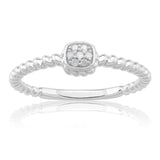 This Sterling Silver 0.03 Carat Diamond Ring with 7 Brilliant Cut Diamonds holds a beautiful diamond cluster. Each stone complements the next, adding shine and light-catching texture to the stunning design. The sterling silver band is woven in a rope-like style that gleams brightly when worn.