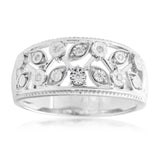 Sterling Silver 0.04 Carat Diamond Filigree Ring with 10 Brilliant Cut Diamonds