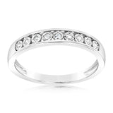 This Sterling Silver .05 Carat Eternity Straight Ring is sleek and stylish, guaranteed to have heads turning. With a classic straight row of brilliant cut diamonds on a durable sterling silver band, this ring is simply divine.