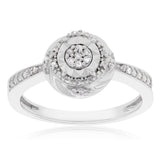 This elegant ring is made of sterling silver and features a total of 1/10 carat diamonds. The ring has a layered floral style that perfectly compliments the sparkle of the diamonds. This ring is perfect for you if you love jewellery with a classic and elegant look. It will be a treasured addition to your wardrobe for years to come.