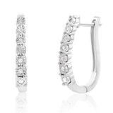 Sparkle through the day in these beautiful Sterling Silver 1/10 Carat Diamond Hoop Earrings. Crafted in the cool tones of sterling silver with a smooth finish and shiny lustre, they look and feel beautiful. The front of the hoops are embellished with glittering stones that sparkle wonderfully in the light. Unlike most round hoops, these hoop earrings feature an ergonomic shape that looks elegant on the ear. These earrings would make the perfect finishing touch to any formal or party look where you are looking for that extra touch of glamour.