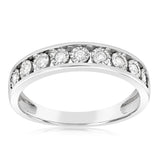 Complete your look with this Sterling Silver 1/10 Carat Eternity Straight Ring. Symbolic of eternal love and strength, this eternity ring is an absolute treat. With an adorable row of perfect diamonds securely in sterling silver, this ring will have you looking stunning wherever you go.