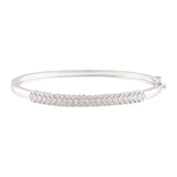 Expertly crafted this Sterling Silver 1/2 Carat Diamond 3 Row 60mm Hinge Bangle shines like a nighttime city skyline. The combination of diamond and sterling silver gives it a luxurious look with a polished finish. When styling yourself for an event, the beauty of this bangle will make any of your outfits look amazing and gorgeous.