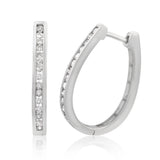 Elevate your hoop game with these stylish Sterling Silver 1/2 Carat Diamond Hoop Earrings. Crafted in the cool tones of sterling silver with a smooth finish and shiny lustre, these earrings are high quality and luxurious. The oval shape adds a unique edge to the piece and the front of the hoop is embellished with glittering stones that sparkle wonderfully in the light. Wear these earrings to any occasion and take your look to the next level with a pair of earrings that are truly timeless.