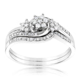 The elegant and opulent style of this Sterling Silver 1/3 Carat Diamond Bridal Set Dress Ring lends itself beautifully to bridal wear, while its classic and timeless shape will complement any outfit. Crafted from high quality hypoallergenic sterling silver, this ring features three stars embellished with ? carat of brilliant cut diamonds. Stunning enough to wear alone, or paired with other fashion jewellery, this ring makes a perfect wedding ring for your partner to be.