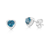 Sterling Silver 1.3Ct Natural London Blue Topaz Heart Shaped Stud Earrings