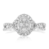Sterling Silver 1/5 Carat Diamonds Oval Cluster Ring with 50 Round brilliant Cut Diamonds