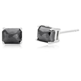 Sterling Silver 1.50 Carat Black Diamond Emerald Cut Stud Earrings