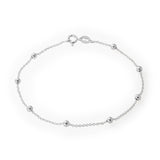 A delicate and dainty design, this Sterling Silver 19cm Ball and Chain Bracelet is versatile and sweet. Consisting of a thin, intricate chain that gives a soft, understated tone to the piece, with small silver balls threaded throughout. Finished with a spring ring clasp that is reliable and easy to use, this bracelet is perfect for everyday wear. Wear it on its own or pair it with other silver pieces to complete the look.